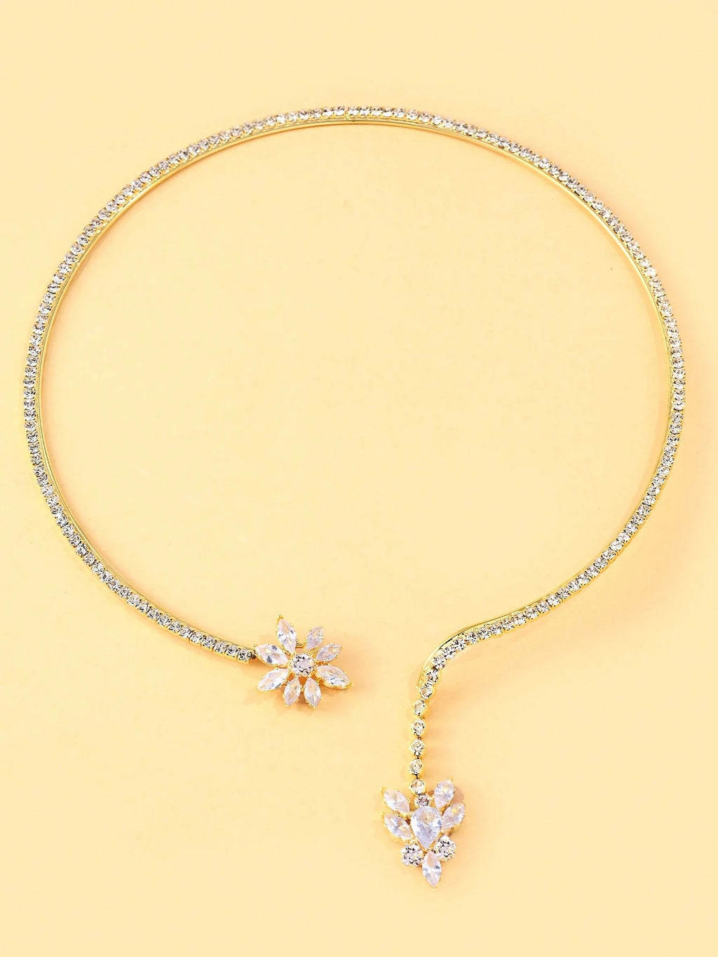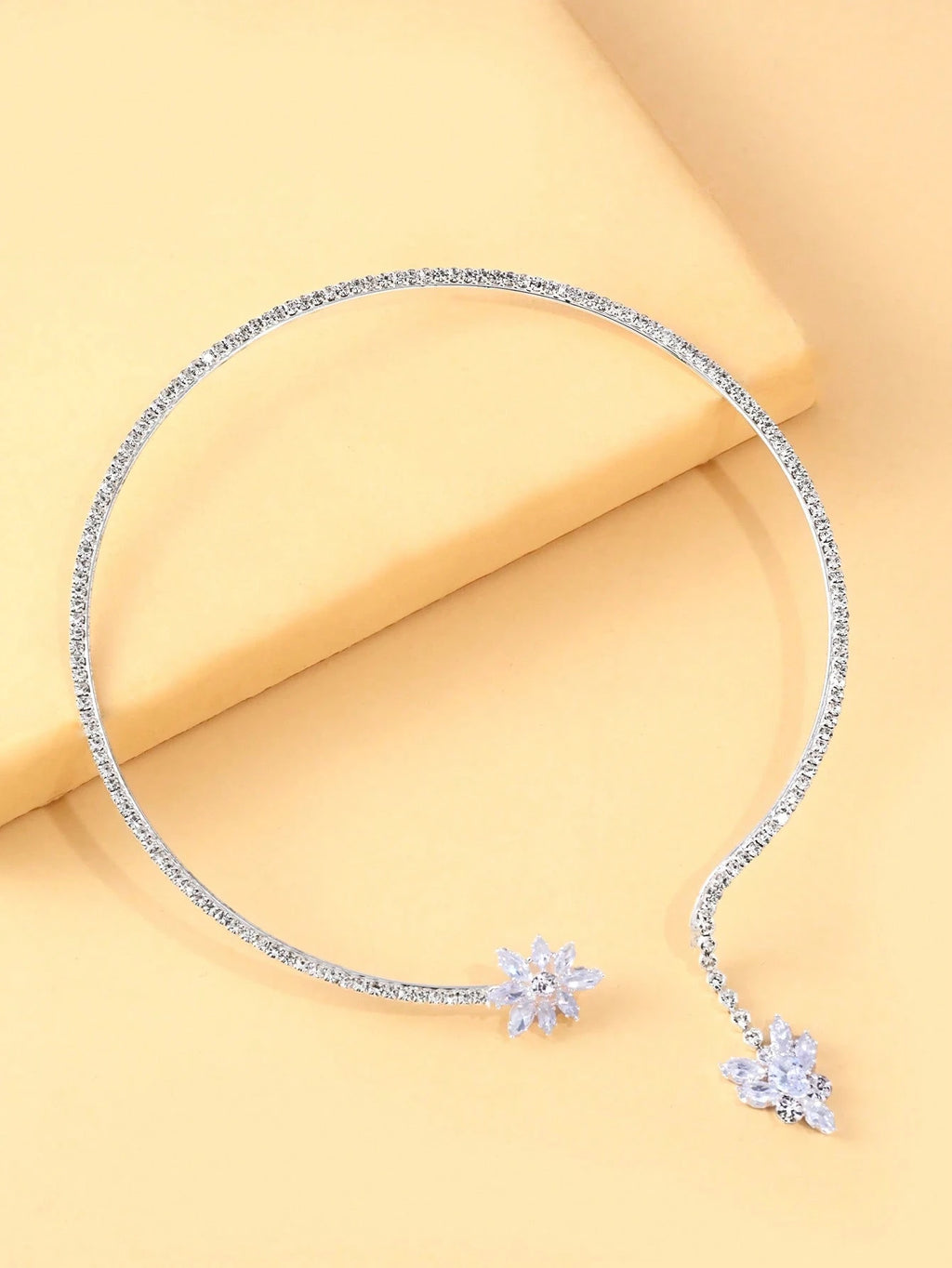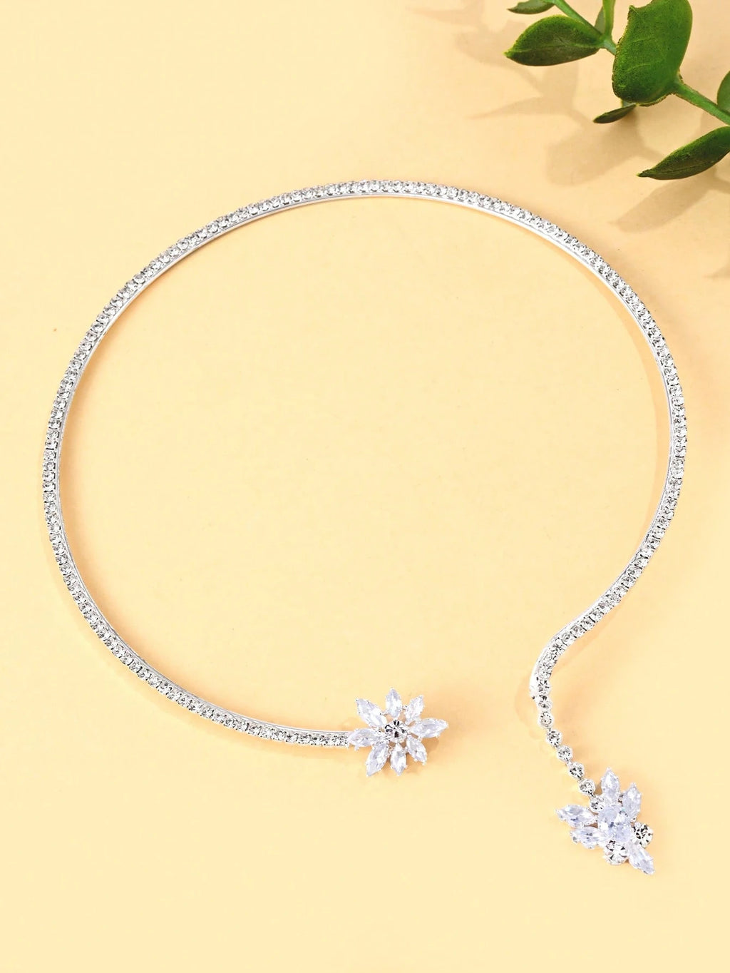 Um colar choker sofisticado em formato de flor de zircônia, com brilho delicado de strass. Perfeito para festas e ocasiões especiais, trazendo elegância e destaque ao seu visual.