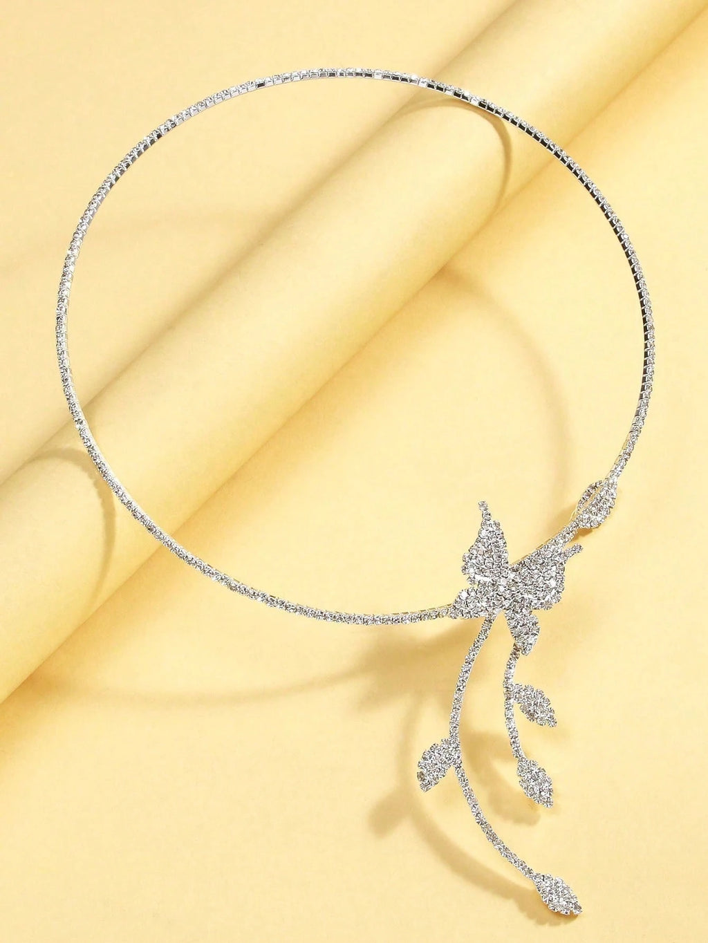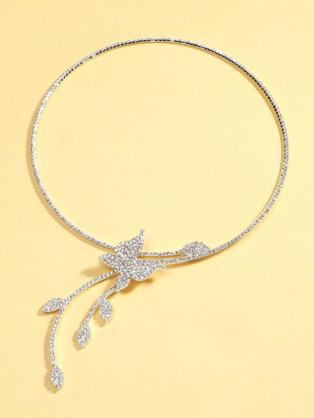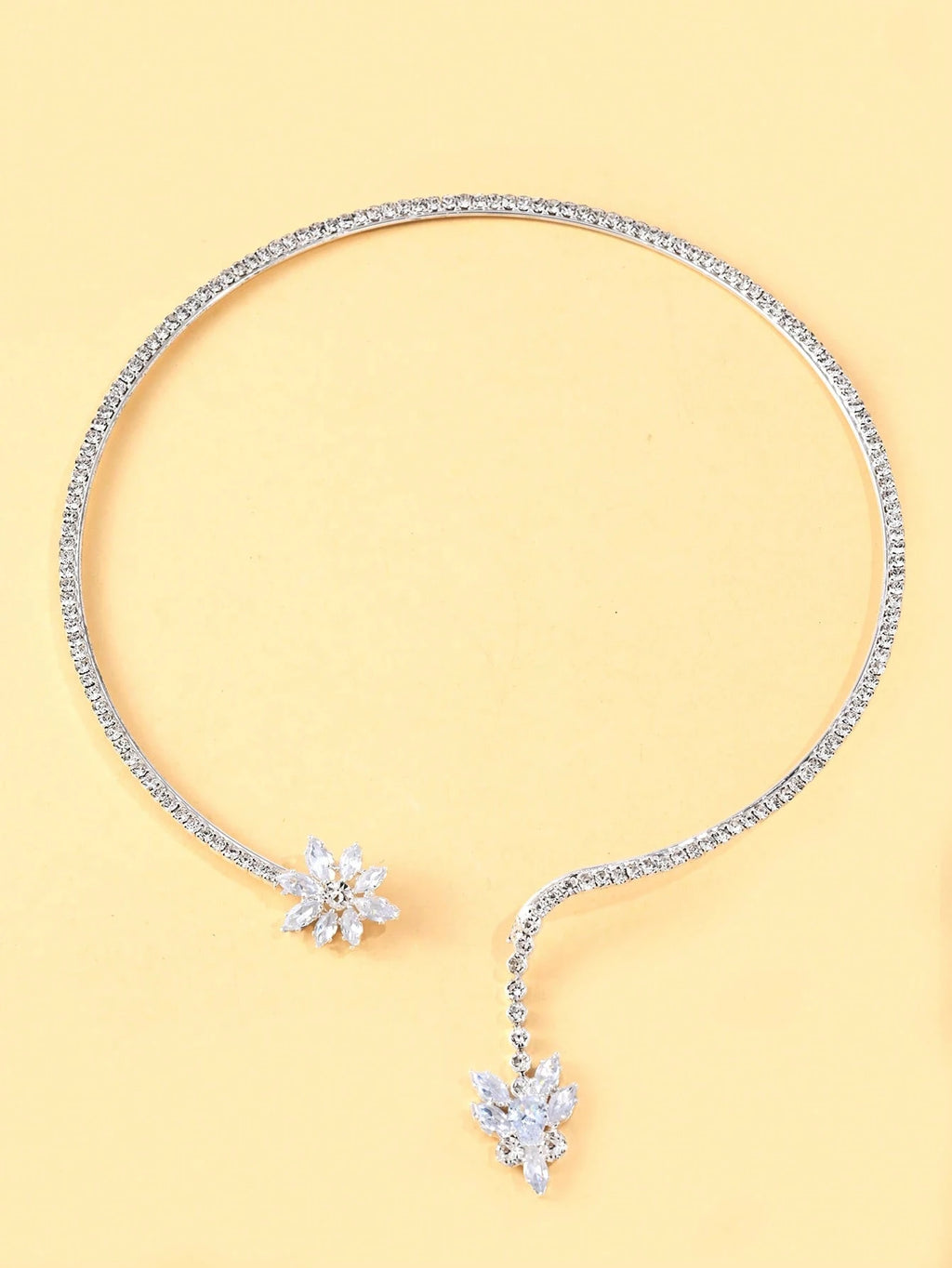 Um colar choker sofisticado em formato de flor de zircônia, com brilho delicado de strass. Perfeito para festas e ocasiões especiais, trazendo elegância e destaque ao seu visual.
