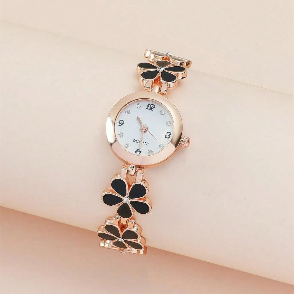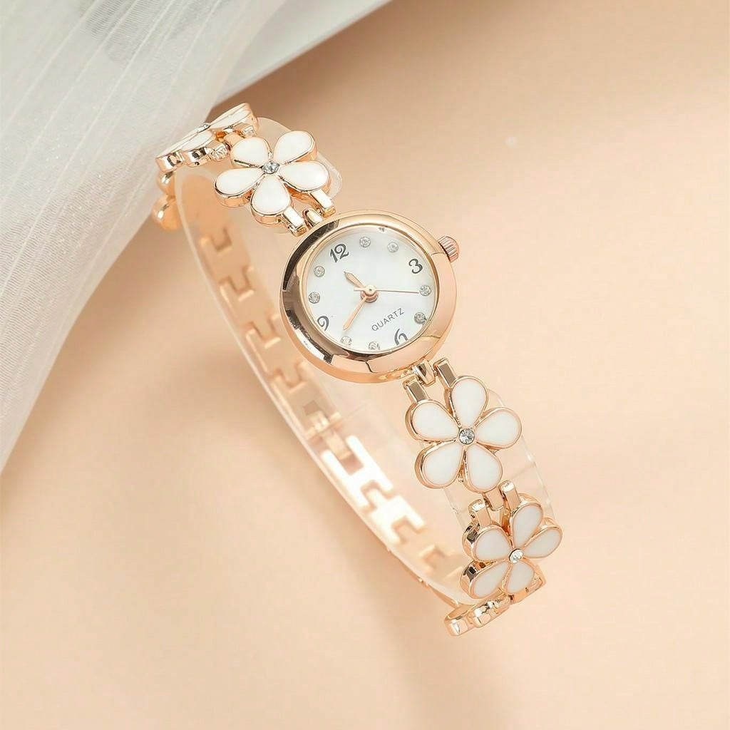 O Relógio Quartz Bloom combina simplicidade e sofisticação com um toque floral inspirado em pedras preciosas: