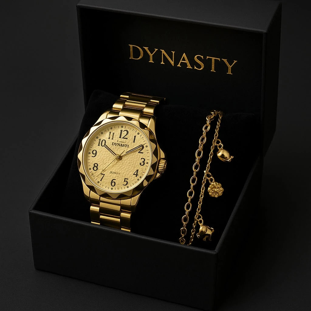 O Relógio Dourado Estelar combina sofisticação e estilo, sendo a escolha perfeita para mulheres que buscam elegância e personalidade em cada detalhe: