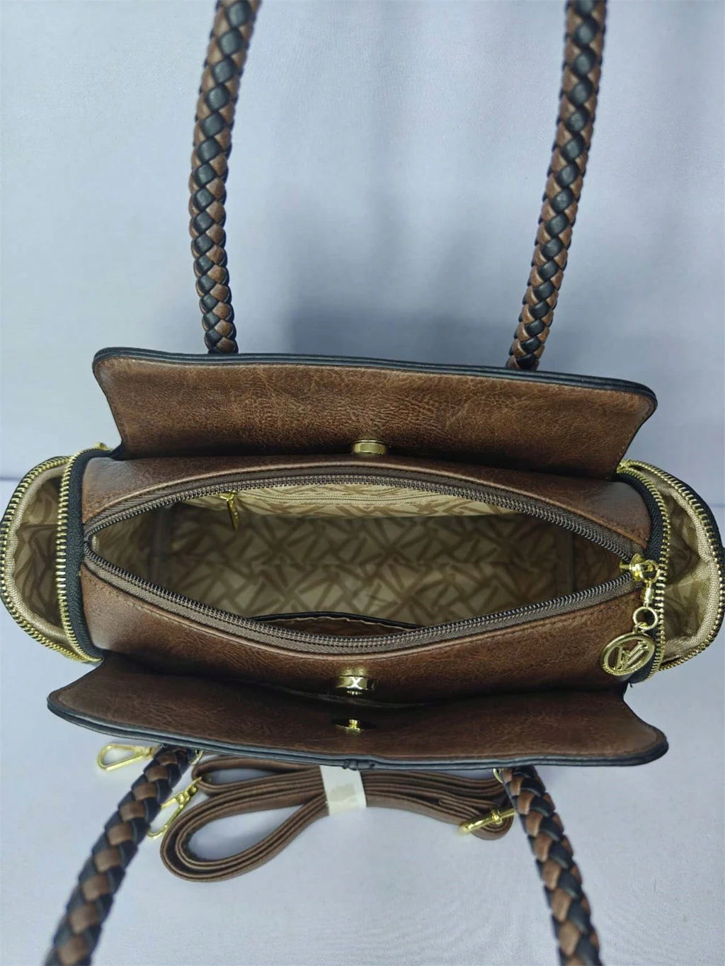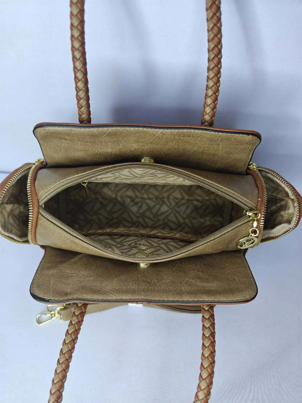 Com alça de mão e transversal ajustável, a bolsa oferece multi-compartimentos para organização e fechamento por zíper para maior segurança. Produzida em Couro PU de alta qualidade, garante leveza e durabilidade sem abrir mão do charme.