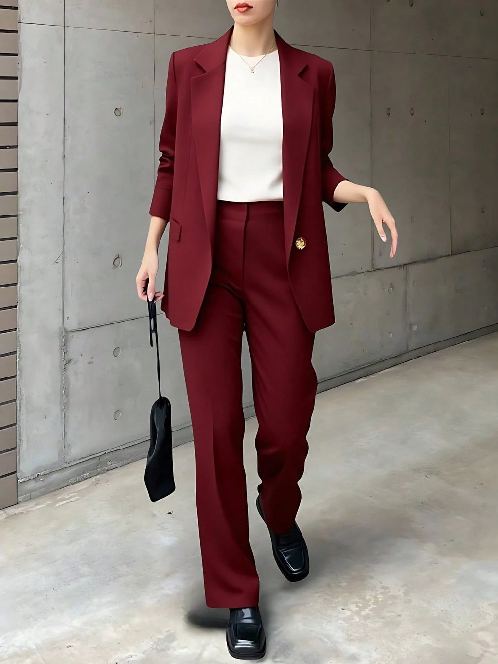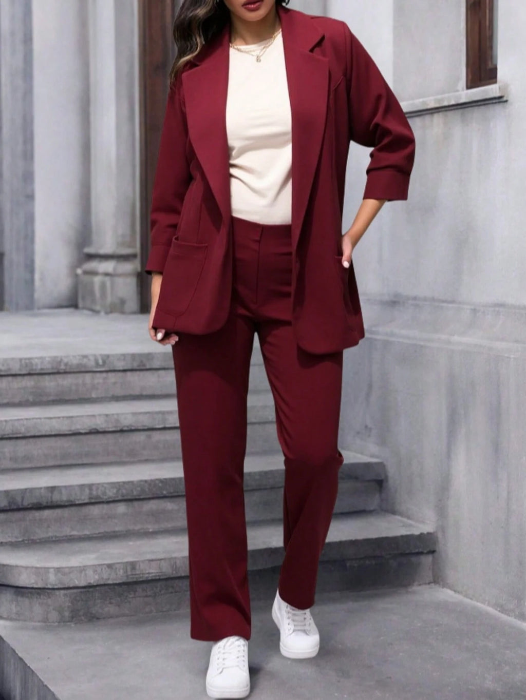 Sofisticação e elegância em um só look com o Conjunto Blazer 3/4 e Calça Bordô “VIVIANE” Gamora Brasil. Ideal para escritório, festas, casamentos, chá de bebê e sessões de fotos, garantindo presença marcante e estilo refinado.