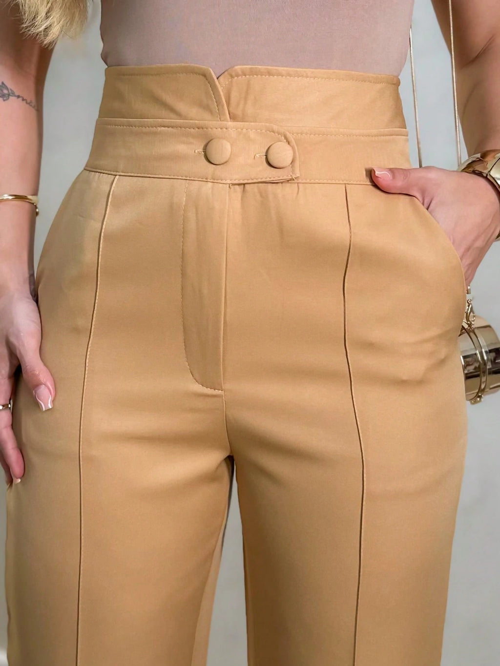Produzida em tecido de alta qualidade, sem elasticidade, a peça oferece máximo conforto e acabamento refinado. Detalhes em botão, bolso frontal e zíper completam o design moderno e funcional, tornando-a perfeita para quem busca elegância no dia a dia ou eventos especiais.